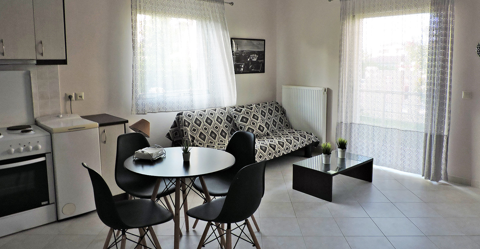 Two of our apartments are on the ground floor and overlooking the neighbor and the inner courtyard, which are consisted of autonomous spaces to accommodate you.
